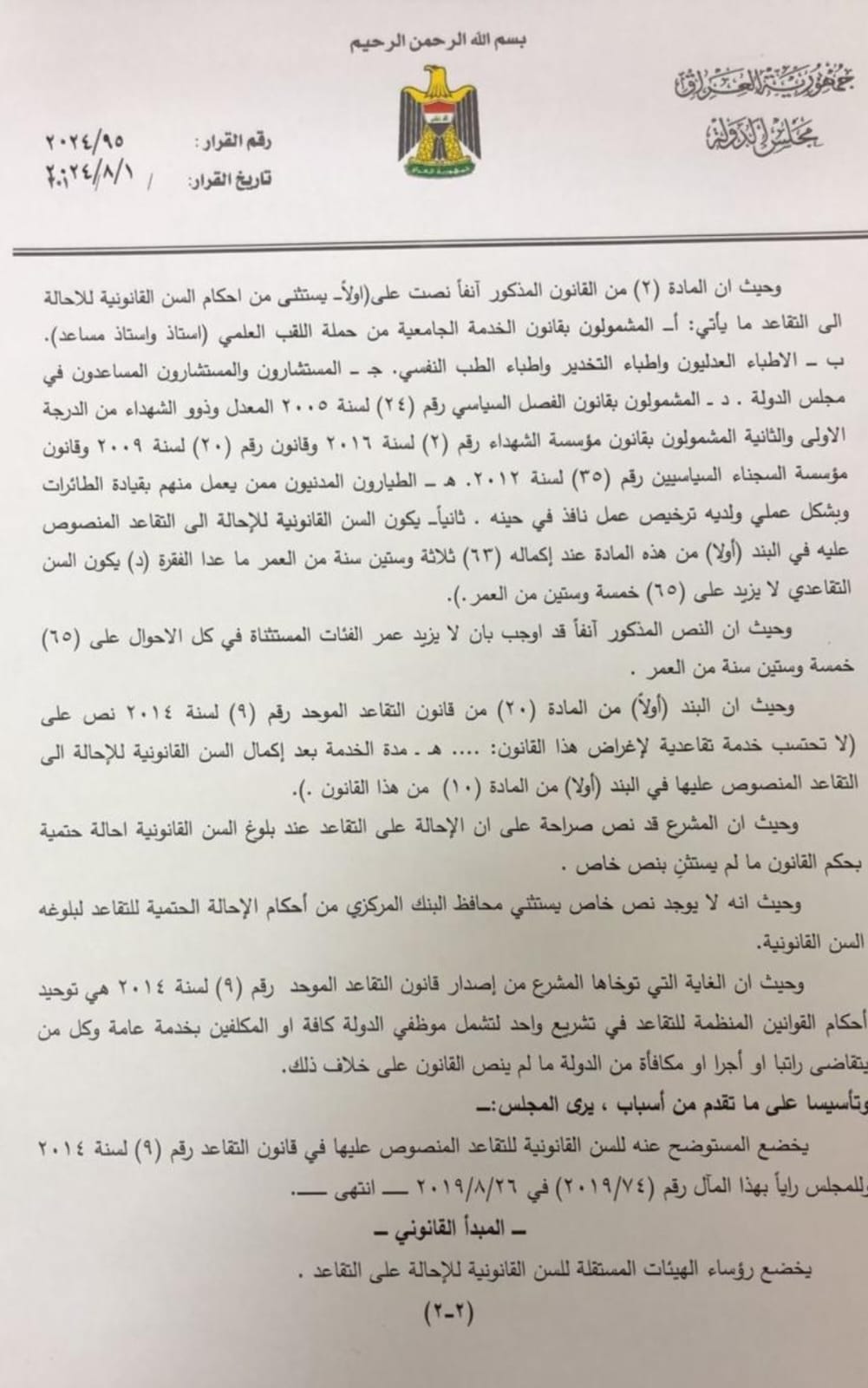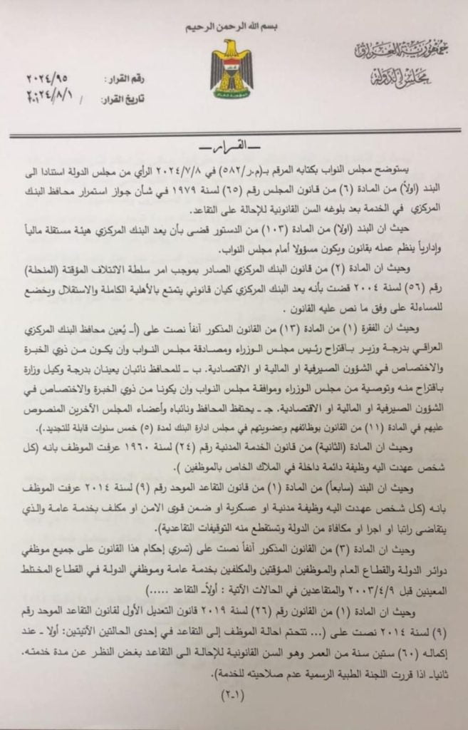 رد مجلس الدولة حول قانونية منصب محافظ البنك المركزي العراقي علي العلاق