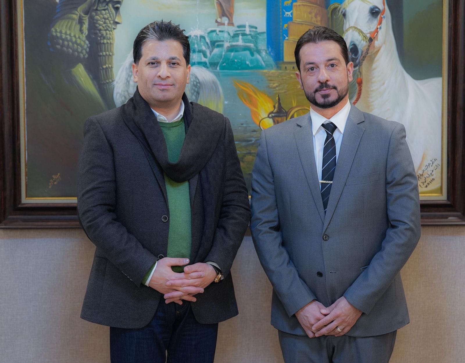 وايضاً قدم الدكتور مفتن أسمى التهاني والتبريكات إلى الدكتور هزاع لتعينه في الامانة العامة للاتحاد العربي للركبي متمني له ان يمثل العراق خير تمثيل”.